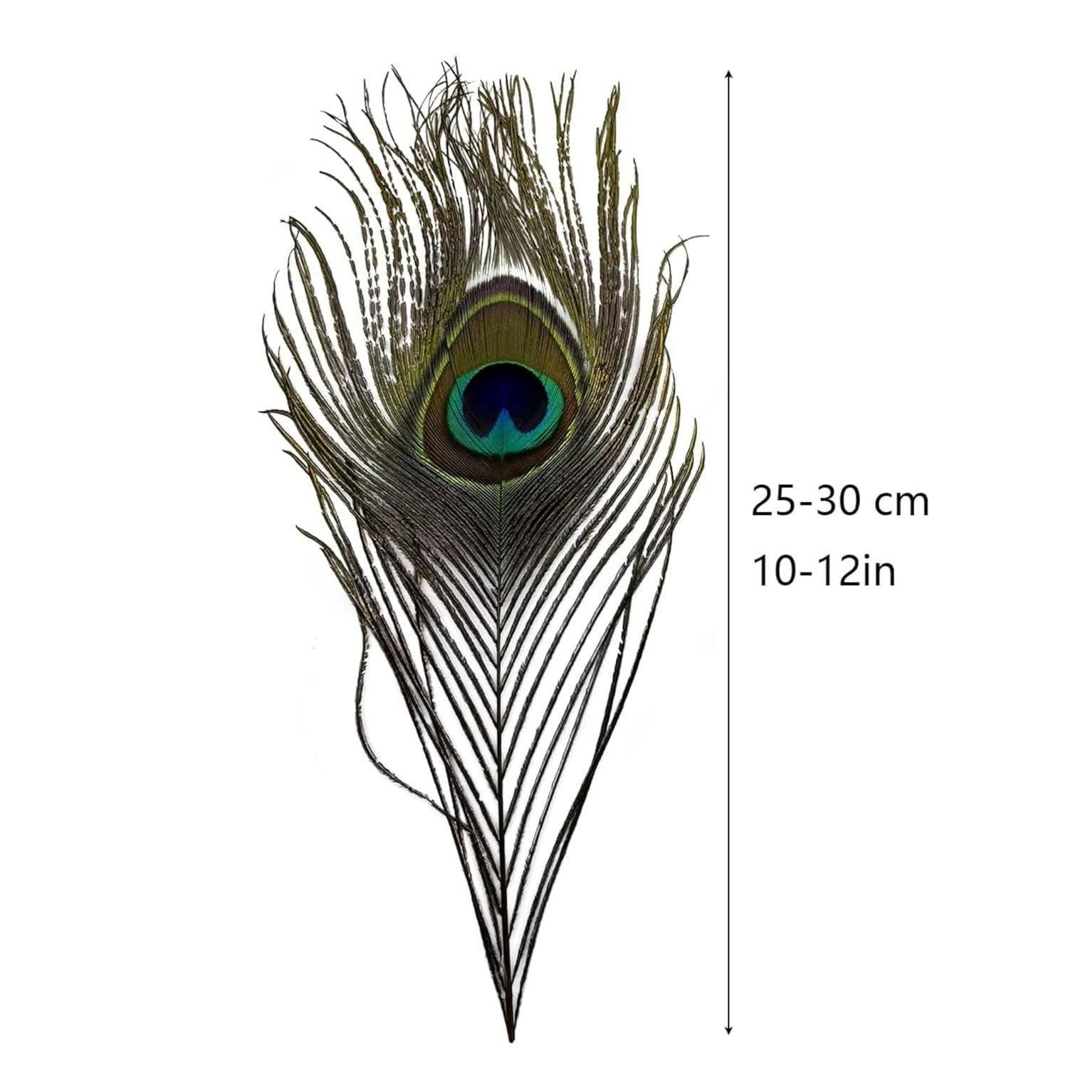 - Each packet contains 15 pcs natural peacock feathers. Each feather is approximately 10-12 inch long from the bottom to the top. Each Feather contains a beautiful and colourful Eye. Eye size is approximately 2 – 3 inch. It is suitable for most vase flower arrangement. As it’s a natural product size may vary slightly.