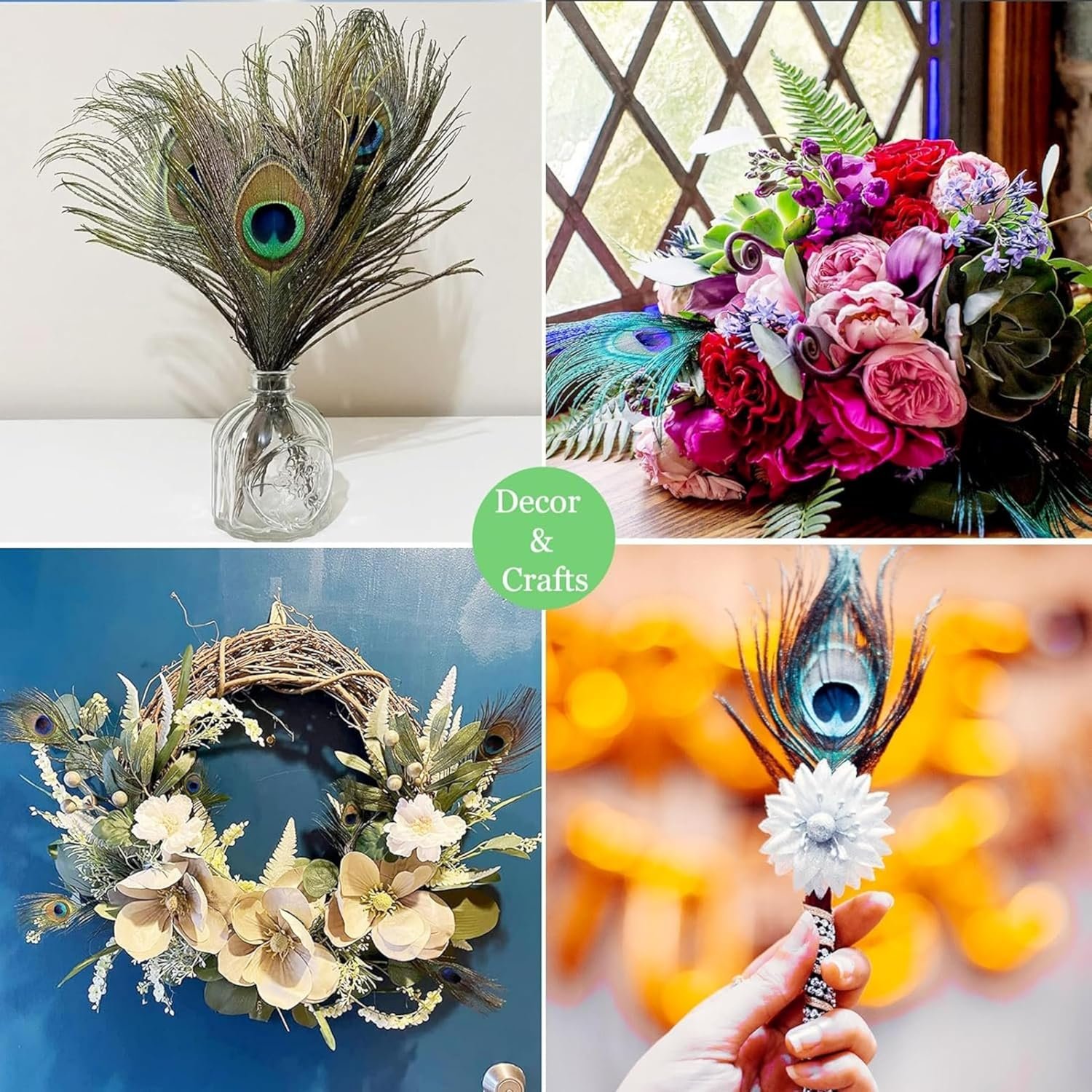 Peacock feathers are a perfect addition to your holiday party and are suitable for table decoration, Jewellery making, Wedding party, DIY craft, living room, Christmas decoration, picture frame, vase flower arrangement, Halloween costume and hat adornments.