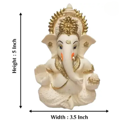 Name : Handcrafted Ganesha Idol God Ganes Showpiece Murti for Car Dashboard Statue Ganpati Figurine Handcrafted Polyresin Little Lord Kaan Ganes Sculpture Luck & Success Diwali Gifts Home Decor Office Desk- White Ganpati