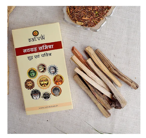 The Satvik Navgarh Samidha 9 Planet Wood Sticks are essential for Hindu rituals, featuring nine distinct sticks made from sacred Navgarh wood, each symbolizing a different planet. Ideal for enhancing your spiritual practices, these sticks offer an aromatic experience while connecting you to ancient traditions. Perfect for home mandirs and various occasions, they are crafted with quality assurance and stored in a US warehouse for timely delivery.